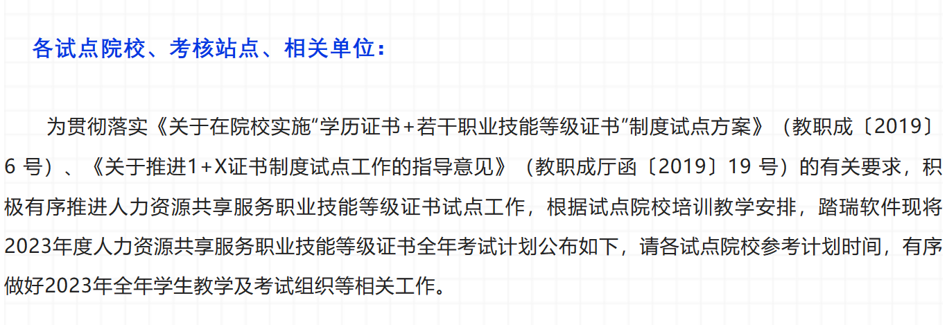 考试计划|2023年“1+X”人力资源共享服务职业技能等级证书