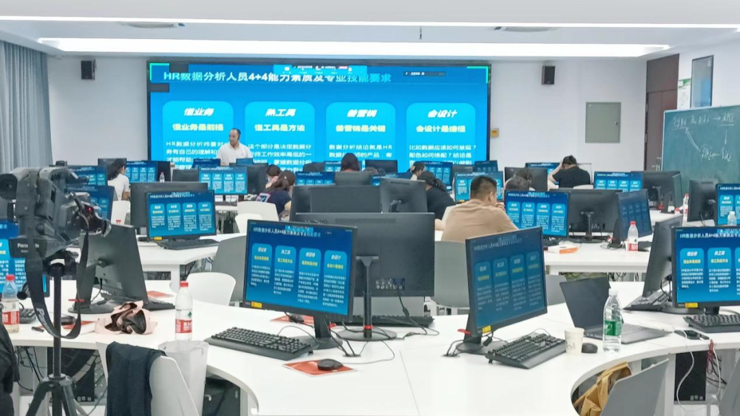 師資培訓環節中,人力資源數據研究分院院長、五星級企業內訓講師王斌結合人力資源數字化轉型探索之旅系列課程及企業實際案例,以“HR數據分析在企業實戰中的具體應用”為主題展開了“線上+線下”為期兩天的互動培訓。一眾與會專家、學者從全流程應用觸達角度,在研學推進HR數據分析場景建模與應用、加強HR數據管道建設、創新HR效能管理儀表盤的設計與開發等主題課程的過程中,逐步構建了HR數據分析應用的全景認知,并針對當下人力資源數字化應用面臨的機遇與挑戰進行了互動剖析。