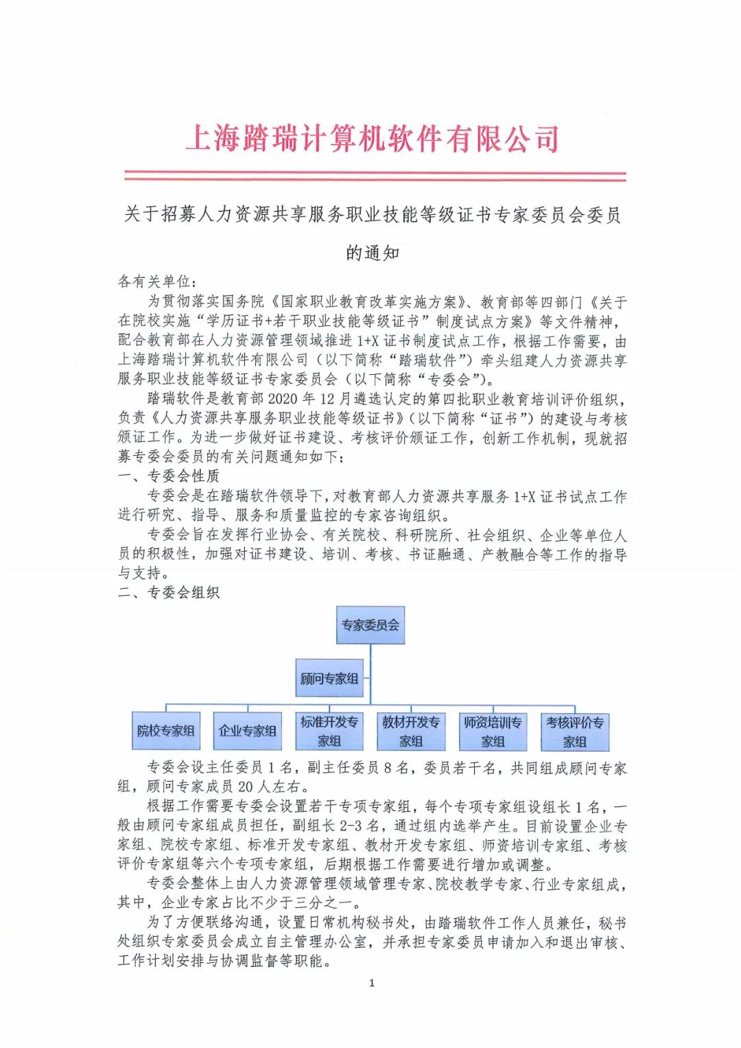 《關(guān)于招募人力資源共享服務(wù)職業(yè)技能等級證書專家委員會委員的通知》附件下載